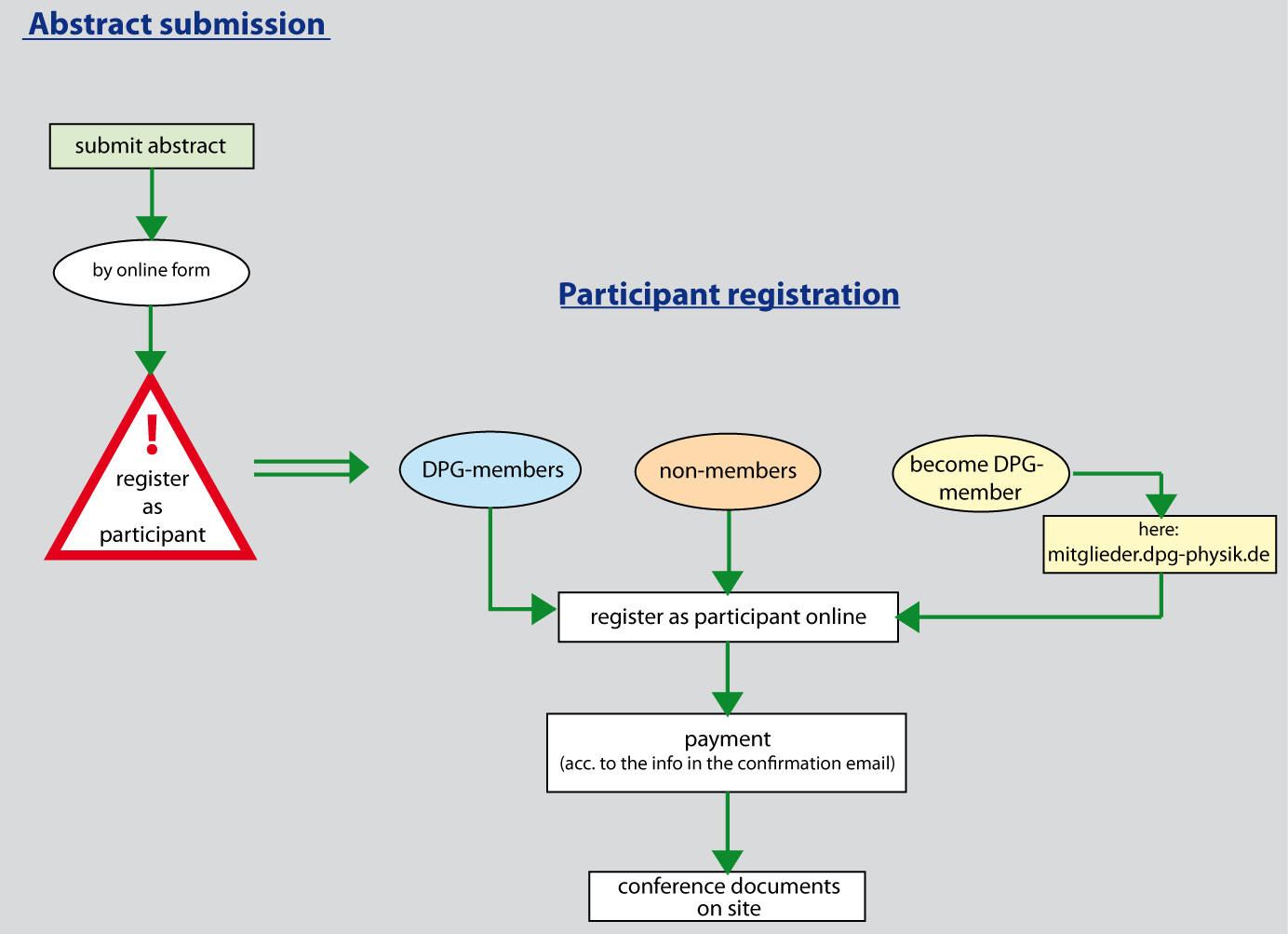 Should you decide to become a DPG-member, please apply for membership online, prior to registration to the conference. The DPG-membership-number will be issued withing 24 hours (working days).2. Registration as participant